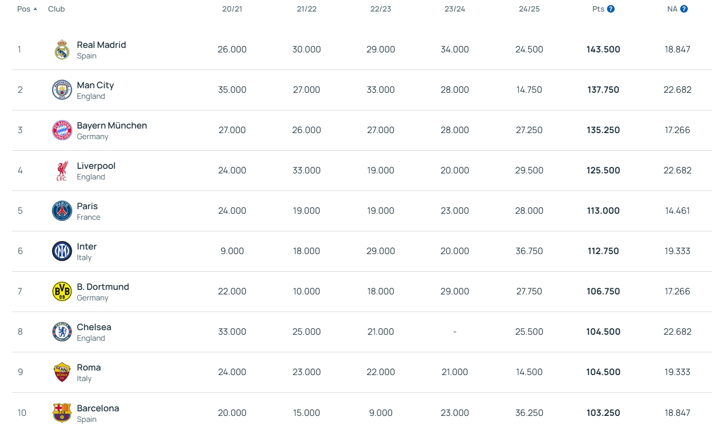 直播吧05月02日讯 据记者Mirko Nicolino消息,本赛季结束后,国际米兰将在欧足联年终系数排名中上升至第三位,这是意大利球队自2007-2008赛季以来的首次。